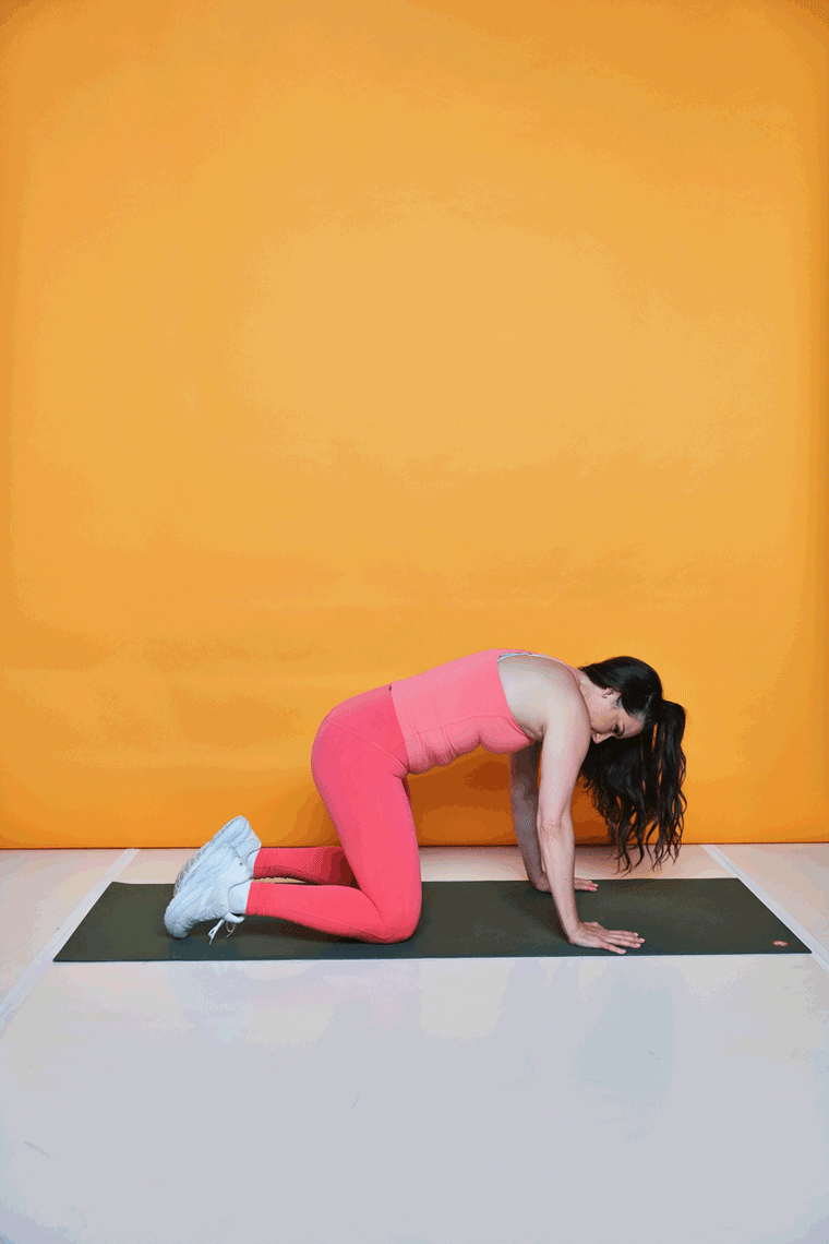 Кошка и корова помогают снять напряжение в организме и расслабить мышцы поясницы. Начните с рук и коленей. Вдохните, одновременно поднимая голову к потолку. Выгните спину на вдохе, опуская живот к земле. На выдохе опустите подбородок на грудь и втяните пресс так, чтобы выгнуть спину к потолку. Продолжайте чередовать взад и вперед.